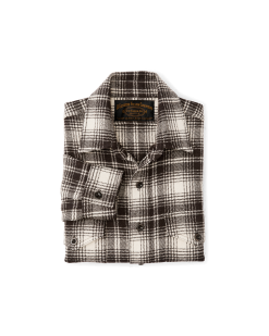 The wool flannel holds warmth. even when soaked. Nylon is added to the yarns for more strength. The hemline curves mirror the asymmetrical cut of the original. The distinctive 3/4-length placket reinforces the button line for strength and structure. The angled pocket bottoms and flaps match an upgraded version of the 1922Â original. Cuffs close tight with sturdy buttons. The collar is cut straight and simple. just as it was a century ago.