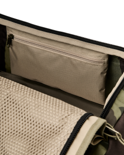 Padded. contoured shoulder straps with an adjustable sternum strap enable hands-free carry. They are removable to prevent snagging during transport. The full length of the main compartment’s U-shaped zipper is covered by an extended storm guard for added water protection. The endcap grab handles and main carry handles are made from strong. durable nylon webbing. An interior zip-close hanging pocket and exterior snap-flapped pocket keep small essentials organized. and the entire top opening panel is covered with a zippered mesh pocket.