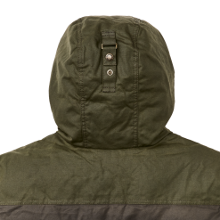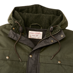 Our warmest coat. this parka is made with our signature waxed-cotton Cover and Shelter Cloths for water resistance and insulated with lightweight. warm 650-fill-power down. The attached hood is lined with wool for warmth. with an adjustable visor to keep rain out of your eyes. The snap-closure front and pockets are easy to operate even while wearing gloves.Â