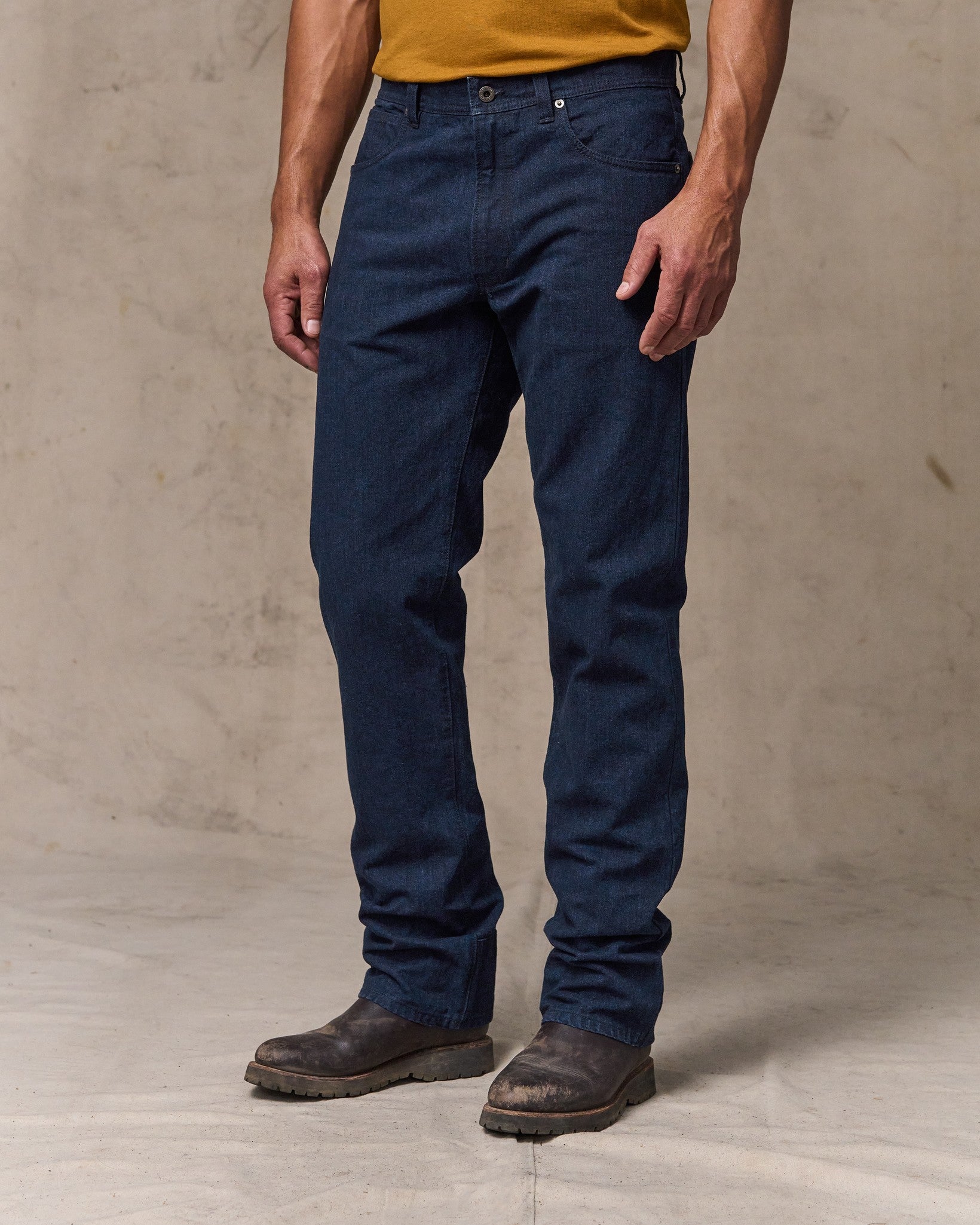 Our Dry Tin Cloth 5-Pocket Pants are made with the unwaxed version of our iconic canvas that’s provided protection from brush. abrasion. and hard use for decades. They’re lighter than many jeans. with durability that is unrivaled. Like a good pair of boots. they break in and soften with wear. The leg cut is straight. with room in the thighs for easy movement. A double-layer heel guard adds structure and durability. Zippered fly and snapped waistband. Reinforced pockets.