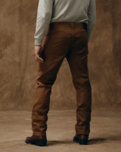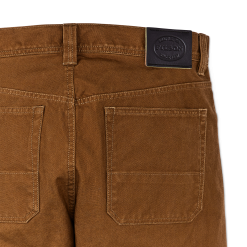 Our Dry Tin Cloth 5-Pocket Pants are made with the unwaxed version of our iconic canvas that’s provided protection from brush. abrasion. and hard use for decades. They’re lighter than many jeans. with durability that is unrivaled. Like a good pair of boots. they break in and soften with wear. The leg cut is straight. with room in the thighs for easy movement. A double-layer heel guard adds structure and durability. Zippered fly and snapped waistband. Reinforced pockets.