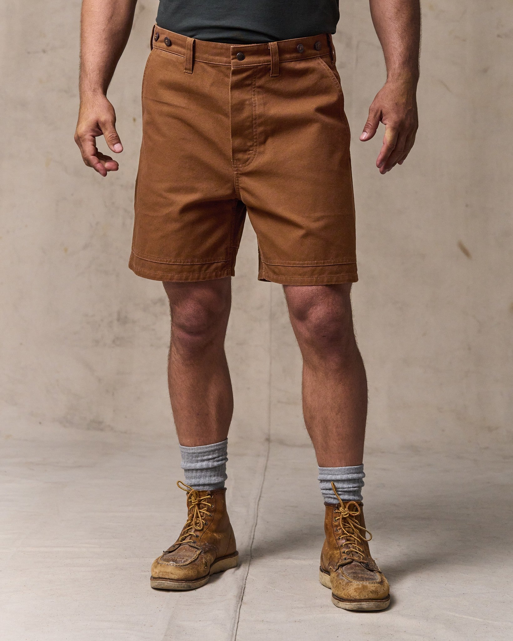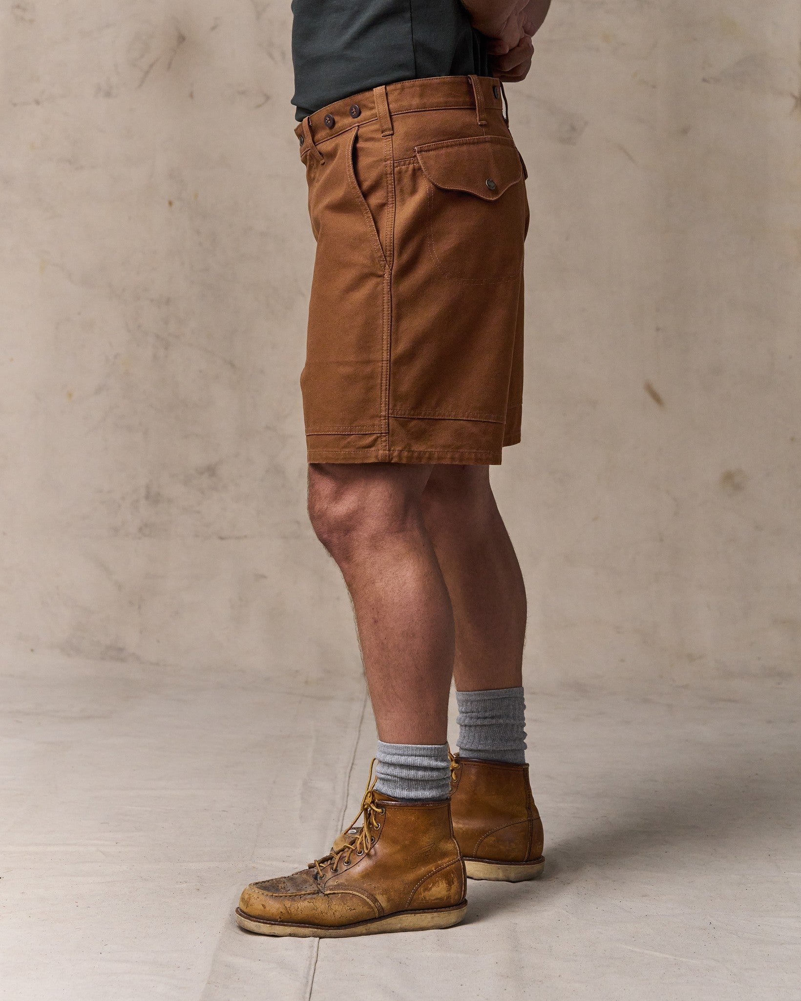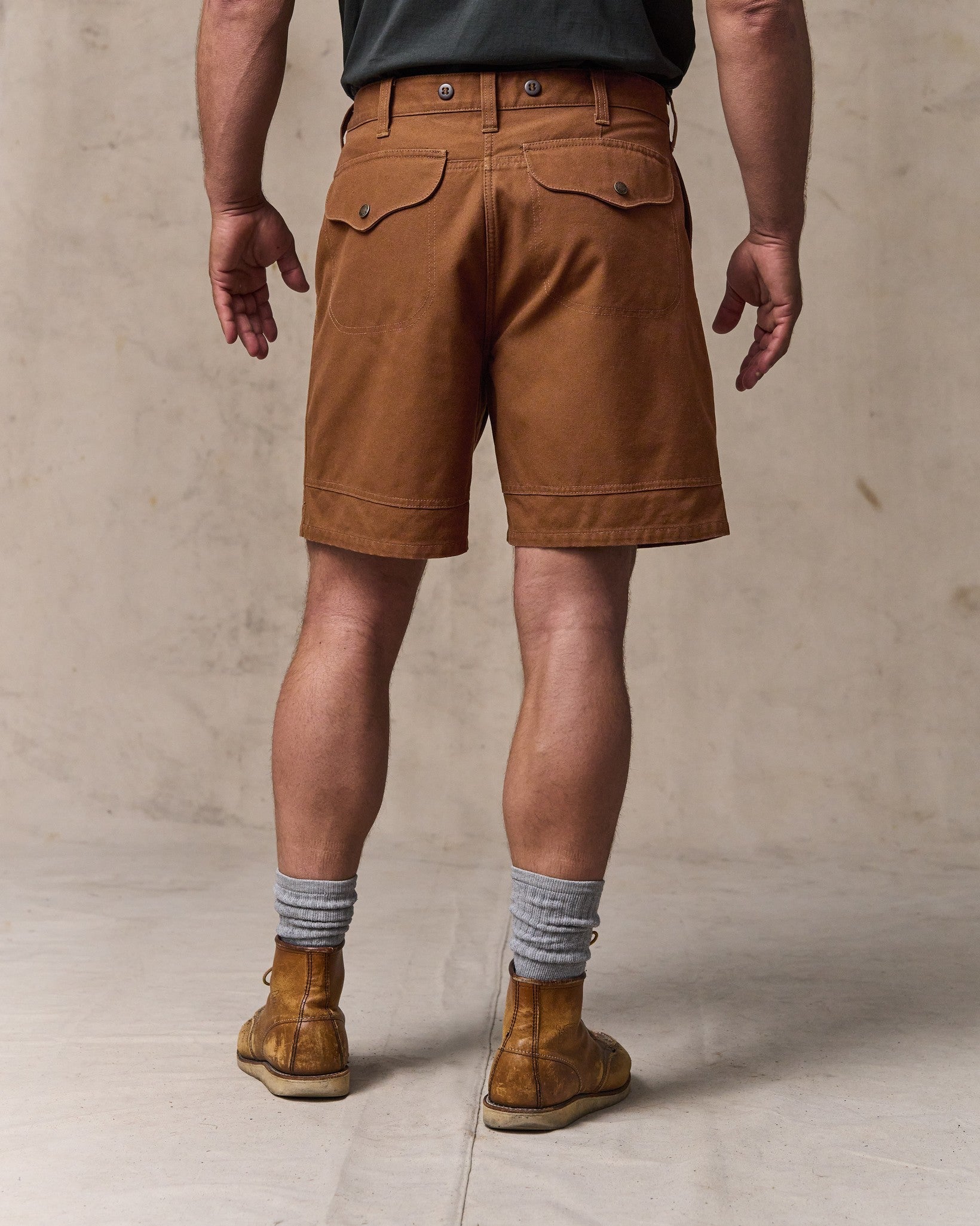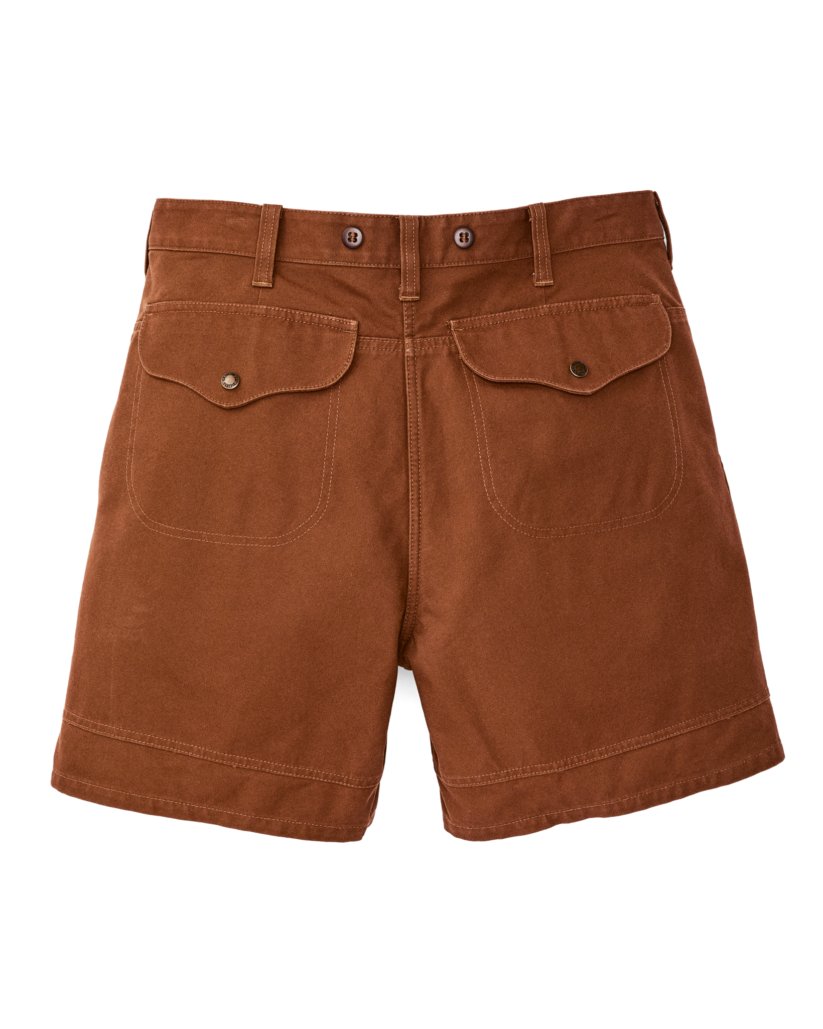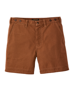 Brought back into service from our archives. the canvas Dry Finish Tin Cloth Shorts are some of the sturdiest you’ll find. Our unwaxed. dry finish Tin Cloth is a tightly-woven duck canvas that’s legendary for resistance to abrasion. punctures and tearing. The basic construction is taken from our iconic Double Tin Cloth Pants. with a double-layer facing on both front and back. Generously sized front pockets are extra-heavy-duty for lasting dependability. The rear pockets are covered with snap-close flaps to keep essentials secure. Seven belt loops prevent waistband sagging. Buttoning fly with hidden button holes. Snap-secure waistband with suspender buttons.