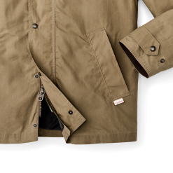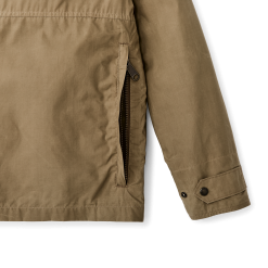 Across the lower back is a lined reach-through pocket for small game or accessories. and on the front. the welted hand pockets from our classic field jackets. The cut is hip-length and well-suited for daily use when you’re not in the field. It’s lined with a combination of lightweight canvas and polyester taffeta. The front zipper is protected by a storm flap and the collar is lined with cotton cavalry twill for next-to-skin comfort. Snap tabs secure the adjustable cuffs and the collar when turned up. Interior stow pocket.