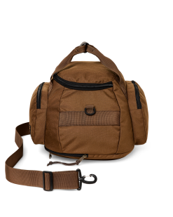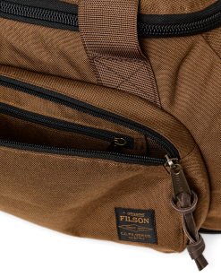This all-purpose bag combines versatile utility and exceptional durability. The lightweight 1000-denier nylon fabric is woven with the same basketweave pattern as ballistic nylon. The U-shaped top zipper provides easy access to gear. A zippered exterior pocket with internal security pocket keeps essentials close at hand. A second exterior zipper accesses a bag that expands into the main compartment to keep wet or dirty gear separated from the rest of your load. Padded backpack straps can be stowed into the bottom sleeve to avoid snagging on other gear or in luggage compartments. The handles and detachable shoulder strap are made from strong. wide nylon webbing. Bridle Leather carry grip. Padded pocket for a laptop up to 16.