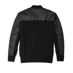 Our Henley Guide Sweater features a cape over the shoulders and arms made from our signature waxed Shelter Cloth. This water-resistant layer provides an added level of protection in wet weather. The sweater is made from 100% merino wool with tightly spun yarns for a firm surface that minimizes pilling and snags. The wool is sourced from U.S. sheep prized for their long. fine fleece. Our merino wool excels at wicking moisture to its tips for evaporation and can absorb up to 30% of its weight in water without feeling damp or clammy. This natural capillary action enables wool to insulate when wet and why it has been the fabric of choice in the outdoors for centuries. Rib-knit collar. cuffs. and hem.