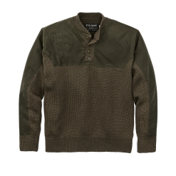 Our Henley Guide Sweater features a cape over the shoulders and arms made from our signature waxed Shelter Cloth. This water-resistant layer provides an added level of protection in wet weather. The sweater is made from 100% merino wool with tightly spun yarns for a firm surface that minimizes pilling and snags. The wool is sourced from U.S. sheep prized for their long. fine fleece. Our merino wool excels at wicking moisture to its tips for evaporation and can absorb up to 30% of its weight in water without feeling damp or clammy. This natural capillary action enables wool to insulate when wet and why it has been the fabric of choice in the outdoors for centuries. Rib-knit collar. cuffs. and hem.