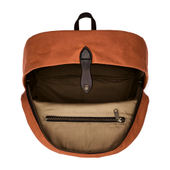 Our Journeyman Backpack carries gear comfortably on the trail and is made with waxed Tin Cloth to protect your gear from wet weather. This tightly woven canvas duck has been thoroughly saturated with wax for water resistance. Our industrial-strength Rugged Twill on the back panel and base adds structure and durability. The padded shoulder straps are lined with Moleskin cotton for comfort and to minimize slipping. The straps are secured to the backpack with Bridle Leather that is strong enough for horse saddlery. The main compartment is accessed by a strong brass YKK zipper that extends more than halfway down the bag for easy access. An interior padded pocket fits laptops up to 15. The exterior pocket is expandable for increased capacity.