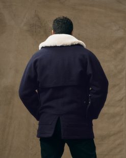 The four pockets. full-width back pocket. and caped construction creates two full layers of 24-oz. wool over the shoulders. arms. and torso for warmth. The rear hem is slit allows the coat to flare when seated for non-binding comfort. Fingertip length.