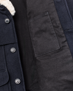 The Packer is made with our Mackinaw Wool. a densely woven twill from sheep raised in regions with wide temperature swings. These sheep develop a fleece that can protect them year-round in hot and cold weather. which is precisely why their wool does such a great job of protecting people. The uncommonly tight weave creates a barrier to wind and water while maintaining outstanding breathability. The flannel lining is made from the same fabric used in our mainstay shirt trusted by sportsmen. tradesmen and Alaskan bush Pilots for 25 years. The natural sheepskin-shearling collar can be turned up and latched at the throat. creating a warm and comfortable barrier against freezing wind and snow that extends to ear-height.