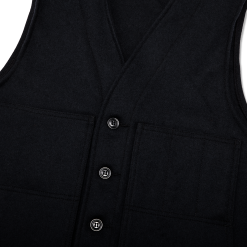 Our Mackinaw Wool Vest provides warmth with excellent breathability. even when wet. Worn over a flannel shirt or under a raincoat or wool jacket. it adds that extra bit of warmth for comfort in the cold. Mackinaw is our iconic wool that’s provided protection from cold and wet conditions for over a century. Manufactured with an uncommonly tight weave. our signature excels at blocking the wind and withstands hard use for decades. This vest’s design works just as well indoors. whether drawing up plans for your next big project or working in a chilly warehouse. The V-shaped neckline adds no bulk around the neck. so there’s still plenty of breathing room for a heavy shirt and a rain shell zipped chin-high. The front features open and slotted chest pockets plus side-entry hand pockets.