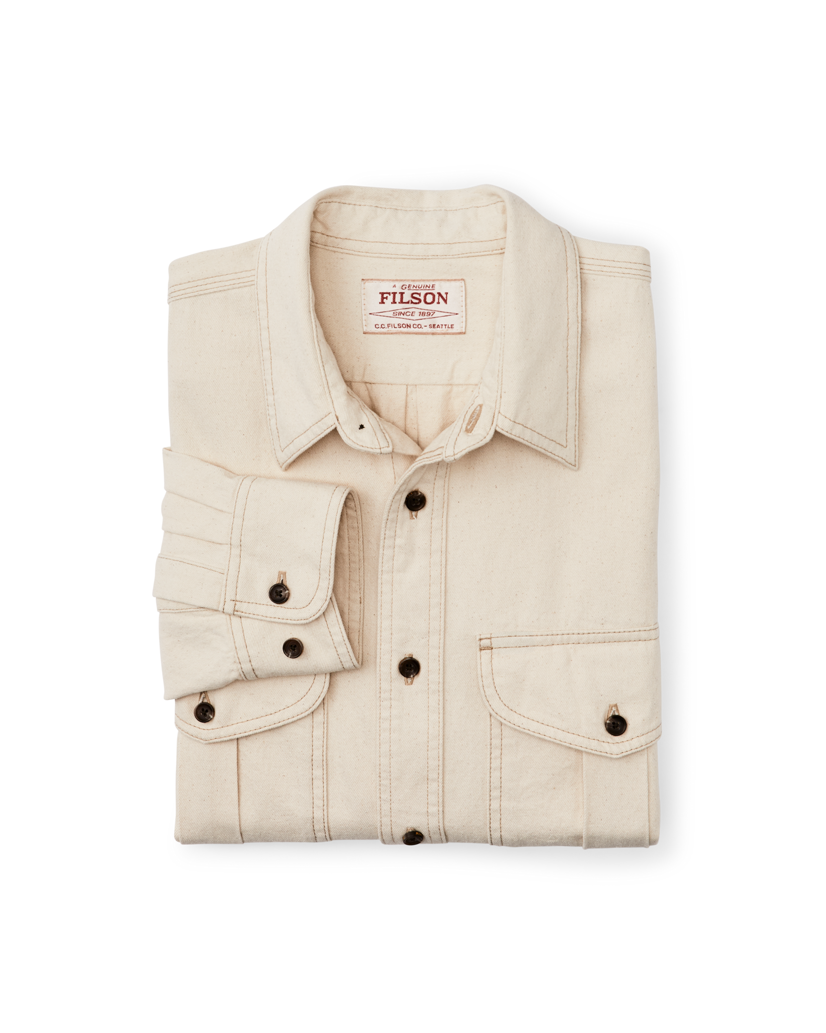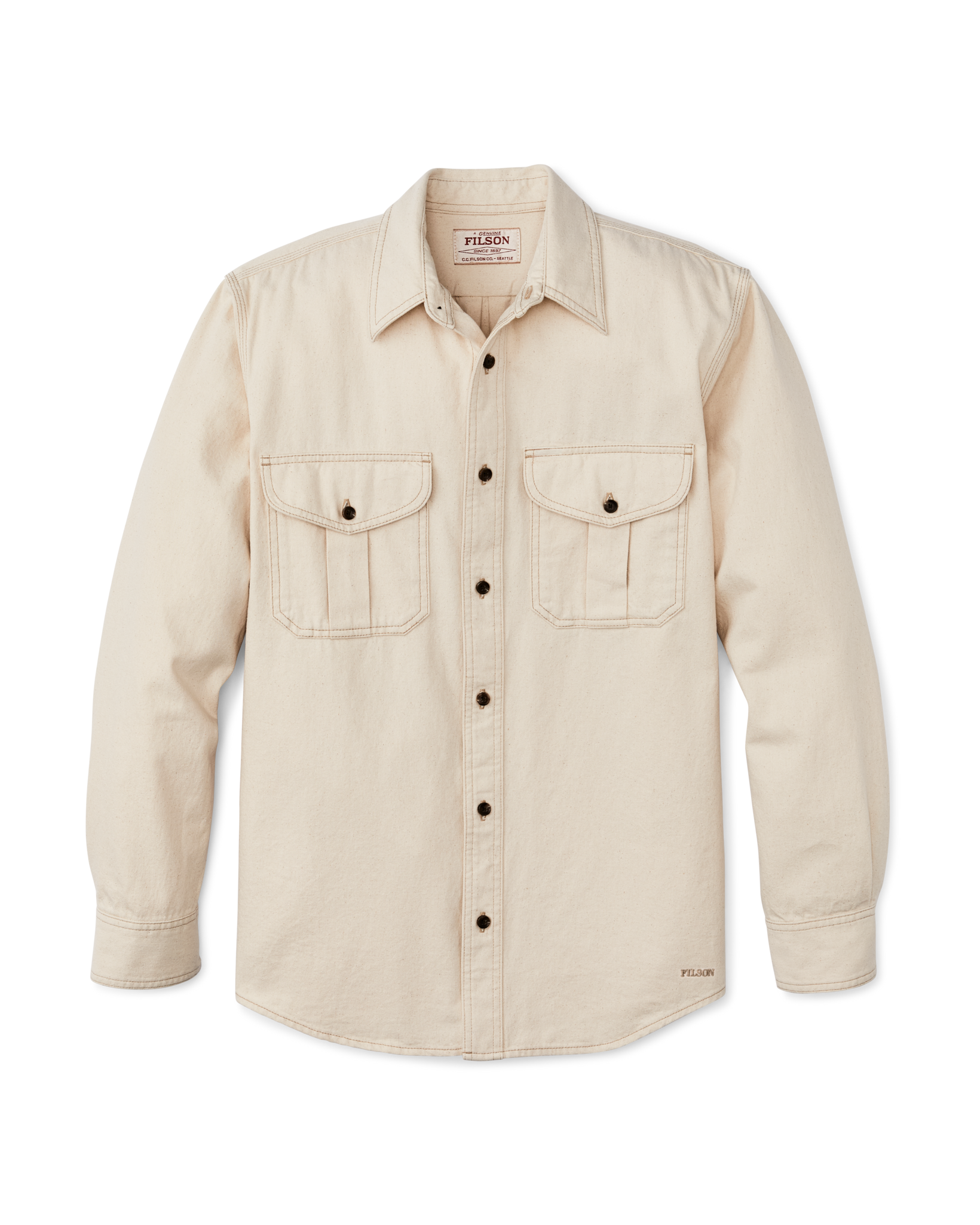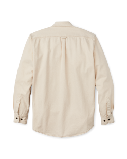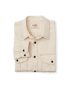This durable classic is patterned after our iconic Alaskan Guide Shirt. a trusted favorite of bush pilots. ranchers. and sportsmen for thirty years. The 7.5-oz. fabric shares the same 2×1 twill weave and durable strength as denim. differing only in that the warp and weft yarns are the same color. This fabric was minimally processed. with tiny bits of the seeds left in the yarns for a rustic effect. Like our original Guide Shirt. the fit is a bit roomy with a center-back pleat for ease of motion. Buttons secure the front. cuffs. and chest-pocket flaps.
