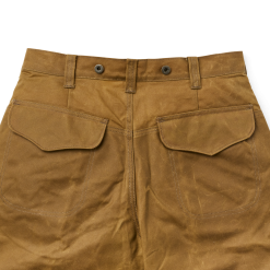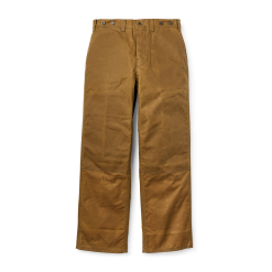 In service for over 75 years. our Double Tin Cloth Pants are a virtually impenetrable barrier to briars. foul weather. and wet brush. With a double layer of our proprietary. tightly woven waxed Tin Cloth from waist to knee. they provide armor-like protection from abrasion and punctures. They’re constructed with double-needle stitching and reinforced with bar-tacking for added strength and durability. Metal-shank button fly and suspender buttons. Roomy fit through seat and thighs for ease of motion with non-binding comfort.