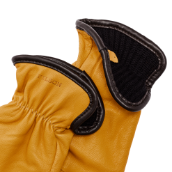 Made with grain Grade-A goatskin sourced from the USA. these wool-lined gloves provide protection from abrasion and sharp edges. The merino wool lining is moisture-wicking and insulates if wet. Goatskin is strong and durable. making it suitable for a thinner gloves that allow good dexterity. It’s also tough enough to protect your hands while clearing brush or swinging an axe. Elastic cuffs keep debris out. Winged thumb design.