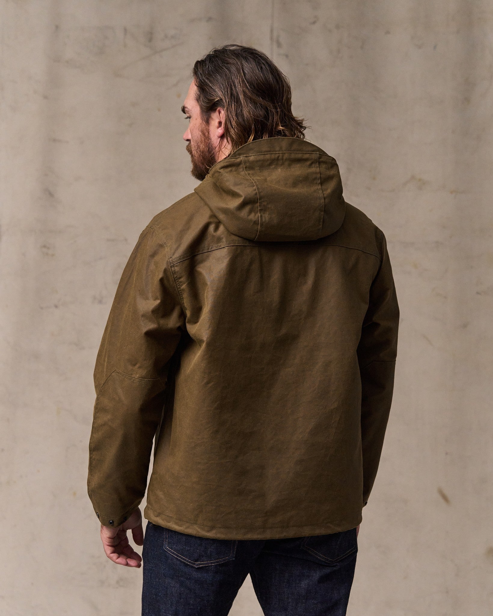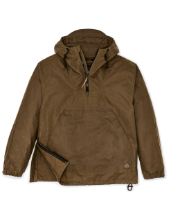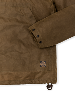 Our Shelter Cloth Waxed Anorak combines the water resistance of waxed cotton with the simplicity of your favorite hoodie for straightforward weather protection. A quarter-length front zipper features a zipper garage to prevent pinching. Inside the large center-kangaroo pocket is a zippered security pocket. The forearms are reinforced with an additional fabric layer for added durability. and feature snap-adjustable cuffs for a custom fit. Side-seam zipper for easy on and off. Drawcord-adjustable hem and hood.