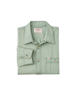On the docks or in the woodshop. under a waxed jacket or a sweater. this shirt simply works everywhere. The midweight 100% cotton is tightly woven with a faint diagonal rib common to twill fabrics. Dual shoulder pleats provide ease of motion. The left chest pocket is slotted for holding a scribe or carpenter’s pencil. Button-front with spread collar.
