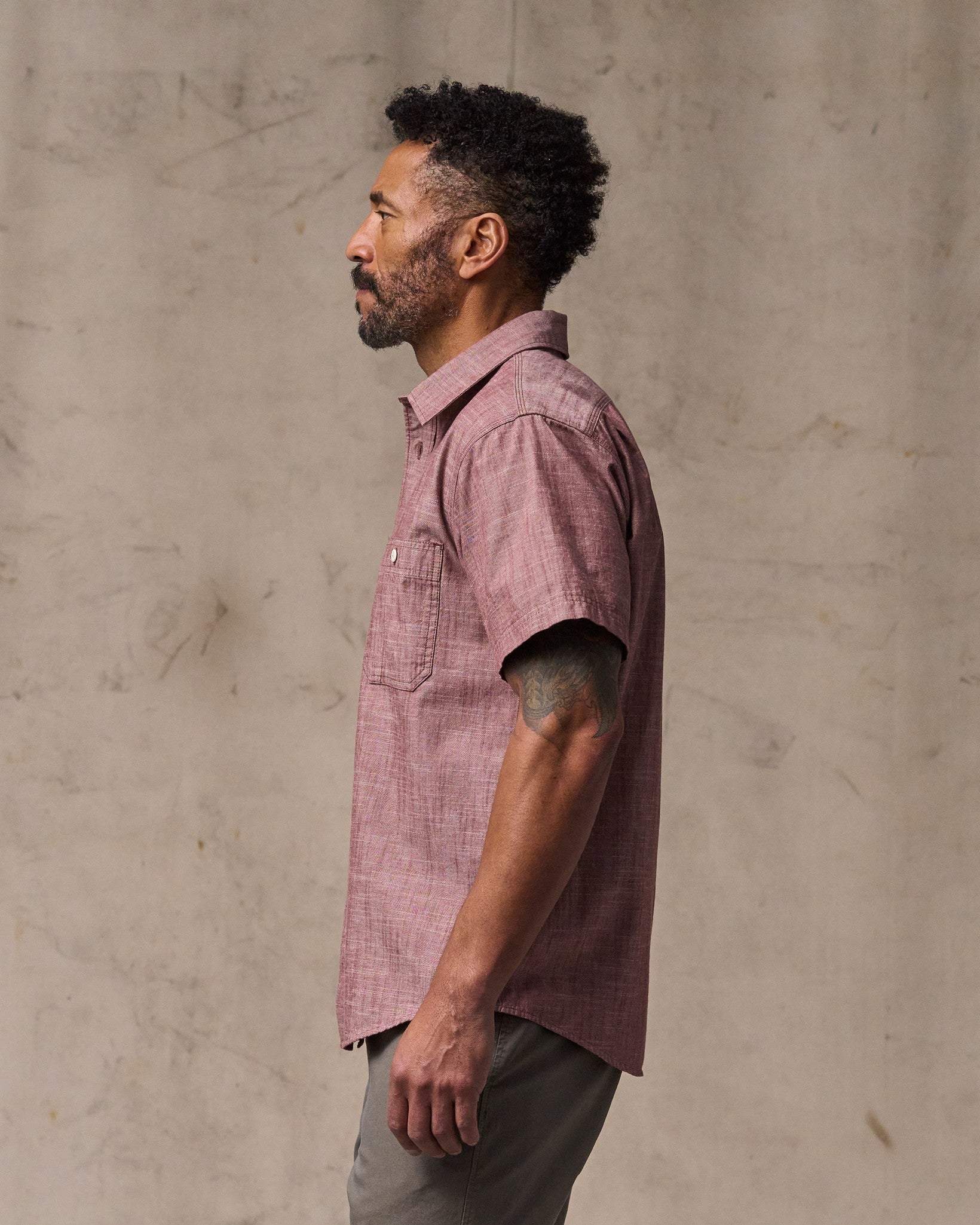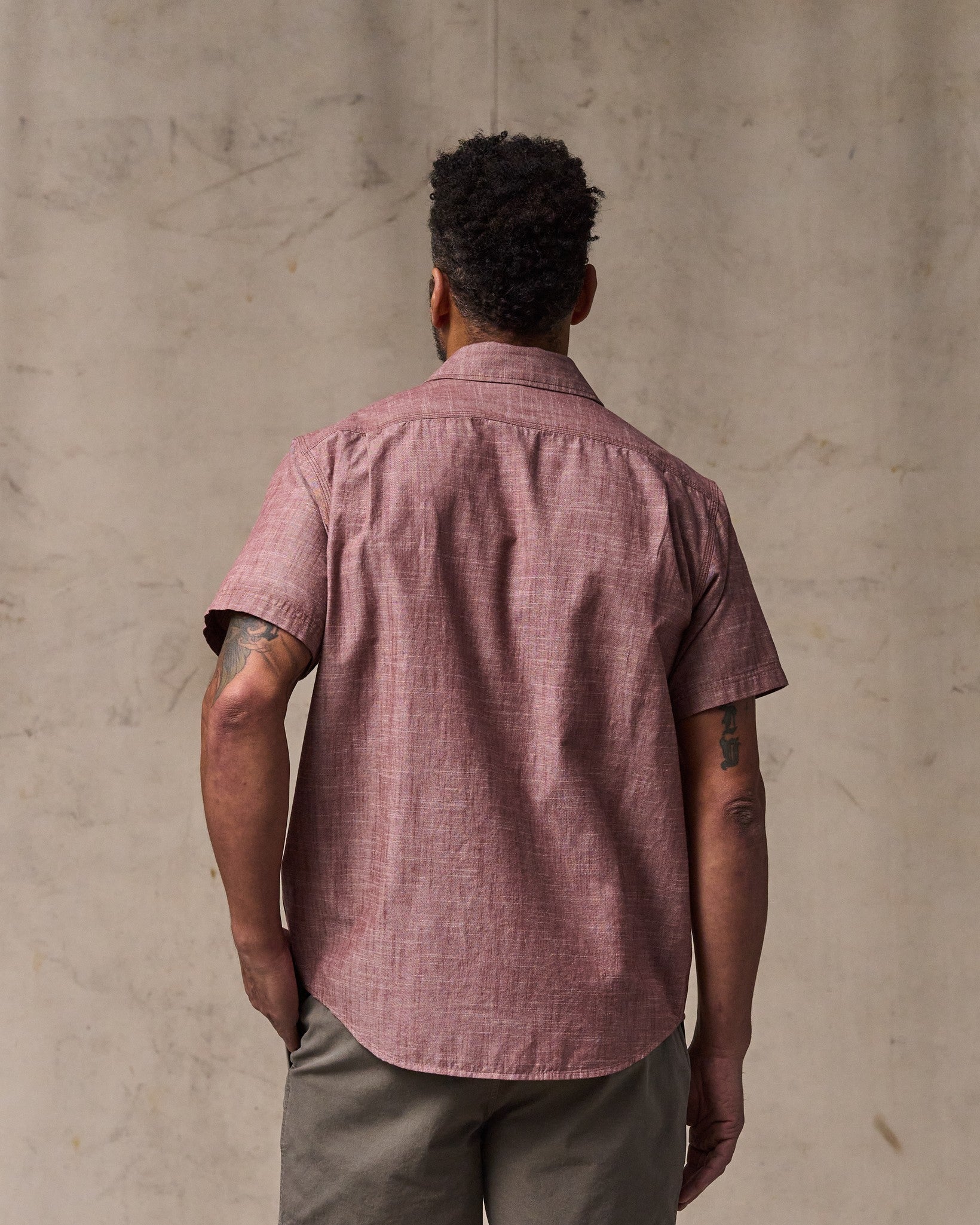 Deceptively rugged and light enough for warm weather. our Short Sleeve Chambray Shirt will be a go-to favorite. It’s made with midweight chambray cotton. a fabric renowned for its durability in work shirts. This warp-faced fabric is related to denim. in that different-colored warp and weft yarns are used in weaving. Chambray differs from denim in that it is a symmetrical plainweave. versus denim’s twill weave. The back shoulders feature dual knife pleats for ease of motion. Button-secure chest pockets. with a pencil slot sewn into the left pocket.