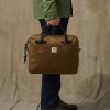 Our Tin Cloth Compact Briefcase is padded to protect a laptop or tablet up to 15. The front stow pocket extends the full width of the briefcase for carrying files. and the rear pocket snaps closed to secure contents. The main compartment’s heavy-gauge metal YKK zipper is built for a lifetime of service. The fabric is our signature Tin Cloth. a tightly woven duck canvas that’s been thoroughly saturated with liquefied wax under heat and pressure for maximum water resistance. Tin Cloth’s tight weave provides outstanding resistance to abrasion and punctures without excessive weight. The Bridle Leather handles are thick and strong for lasting service.. The interior is fully lined with cotton Cover Cloth. Detachable. adjustable webbing shoulder strap.