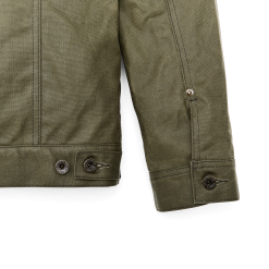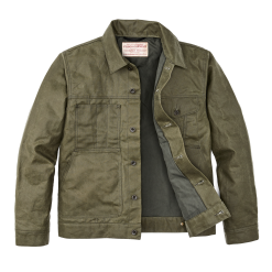 The Short Lined Cruiser is built with Tin Cloth. Filson’s signature waxed cotton that has delivered protection from weather. brambles. and abrasion for a century. This 14-oz. canvas duck’s weave is uncommonly tight with outstanding tear strength. Treated with our oil-finish wax that keeps you dry in foul weather. its durability and weather resistance is unmatched. Tin Cloth is built to break in rather than wear out.