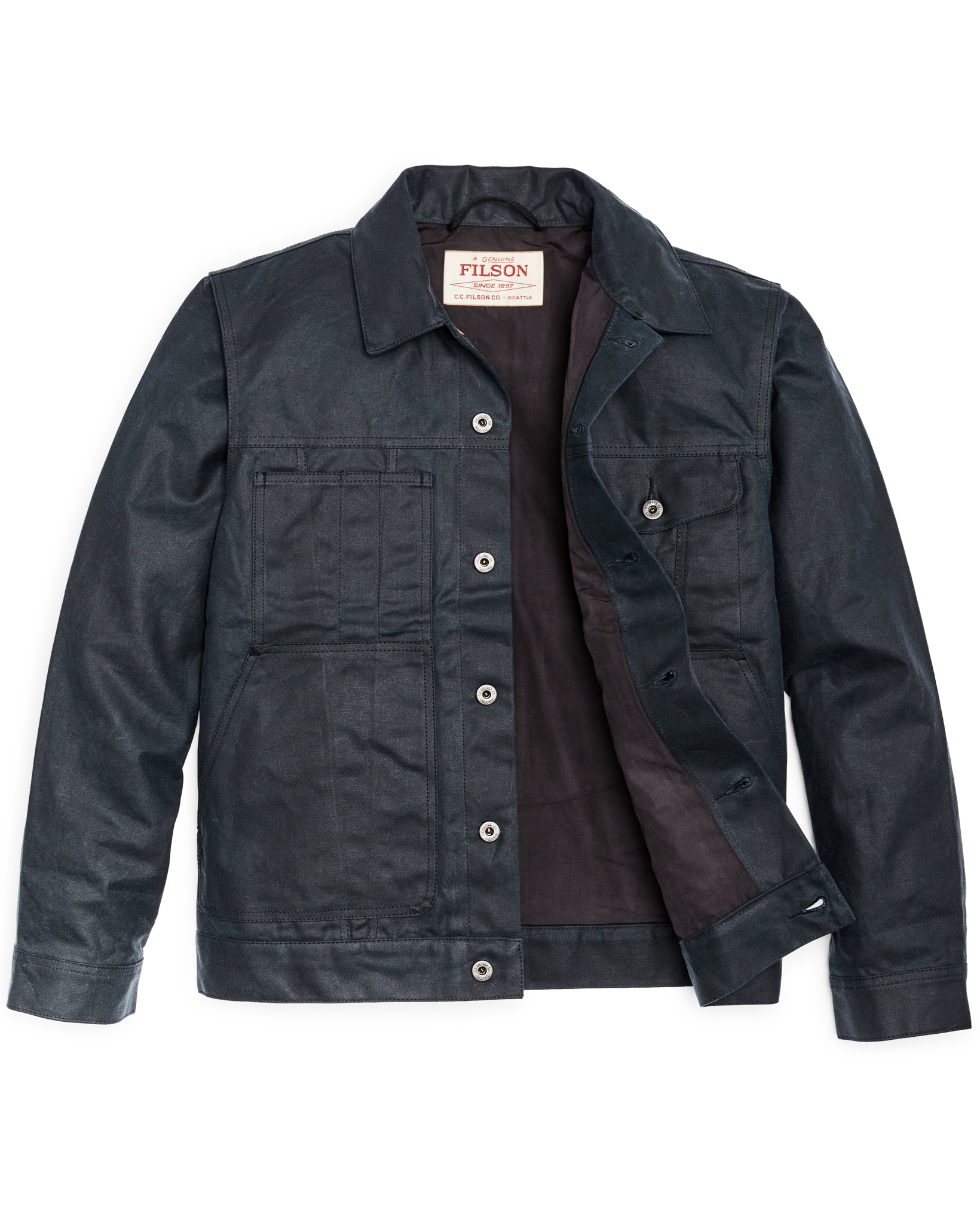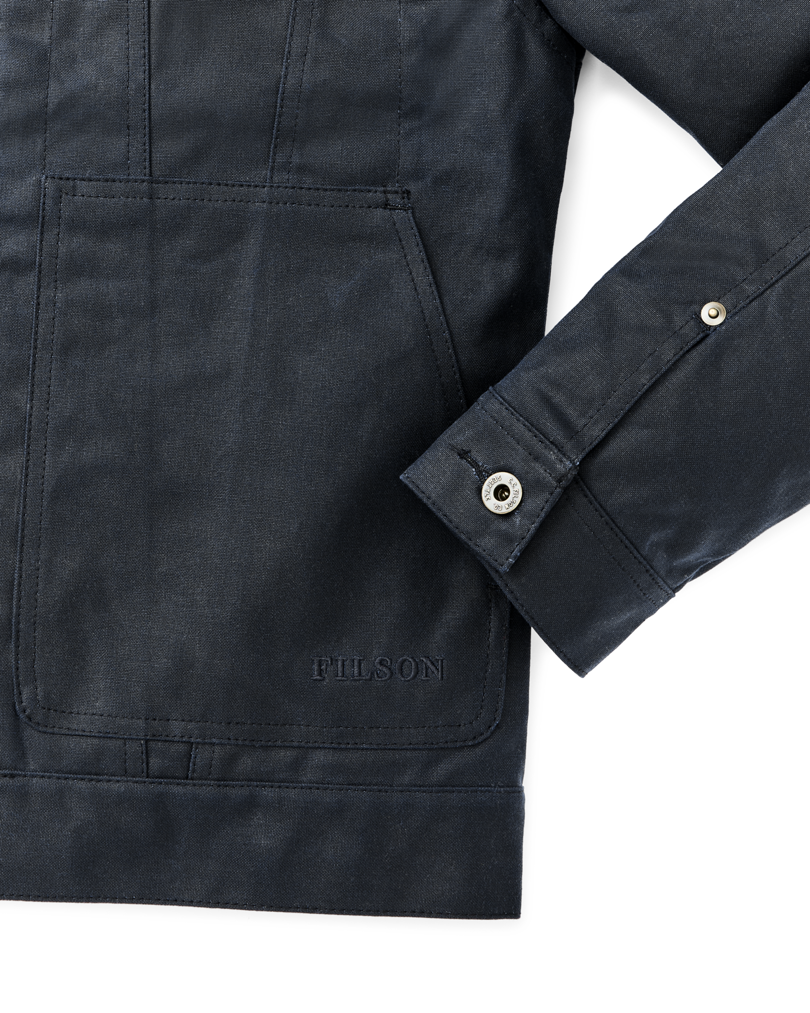 The Short Lined Cruiser is built with Tin Cloth. Filson’s signature waxed cotton that has delivered protection from weather. brambles. and abrasion for a century. This 14-oz. canvas duck’s weave is uncommonly tight with outstanding tear strength. Treated with our oil-finish wax that keeps you dry in foul weather. its durability and weather resistance is unmatched. Tin Cloth is built to break in rather than wear out.