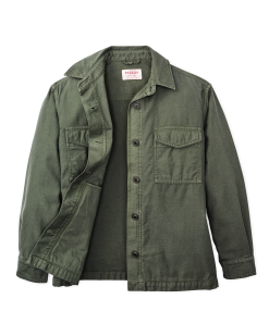 Lightly structured for layering. it works as a spring jacket or dependable overshirt. Button-front closure. adjustable cuffs. and flap pockets add simple utility without bulk. The fabric softens with time and wear. developing a lived-in character that feels uniquely yours.