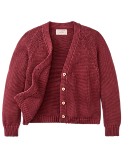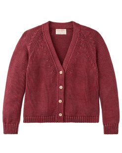 This classic sweater is knitted with soft organic cotton. The timeless cardigan design provides warmth with straightforward ease that is comfortable in any setting. Four-button front closure with a V-shaped neckline. The rib-knit cuffs and hem hold their shape. Pocketless for clean lines. Cropped at waist length.