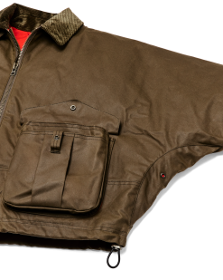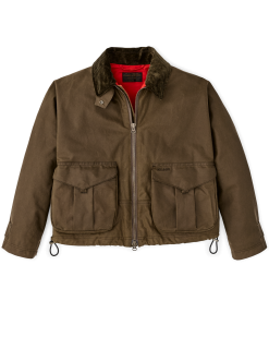 This jacket is an instant favorite whether tackling chores. exercising the dog. or running about. It’s made with our signature oil finish Shelter Cloth from England’s historic British Millerain. a pioneer of waxed canvas. In a nod to tradition. the caped shoulder construction eliminates exposed seams for improved water resistance. Large expandable cargo pockets carry the essentials and feature hidden hand pockets. The entire jacket is lined with warm brushed-cotton flannel. The drawcord-adjustable hem is a detail retained from the original.