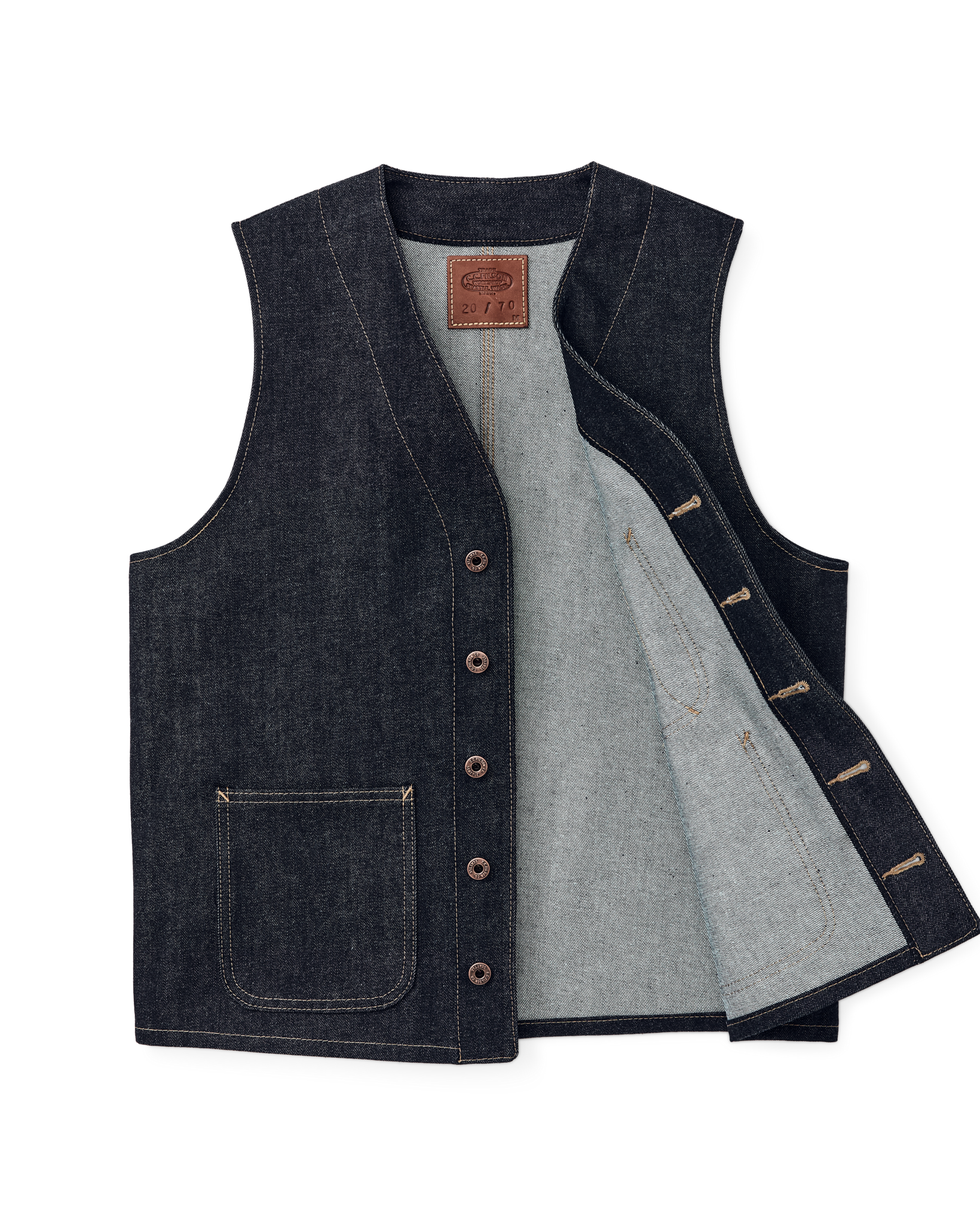 Just 70 of these classic vests were crafted in our Seattle Workshop. The design is adapted from surveyors’ vests in our archive. Unlined for versatile wear. it layers easily under a raincoat or an insulated jacket. Worn over a flannel. it protects your core from wood chips. sawdust. and heat-sapping wind.