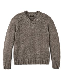 This sweater is knit from a premium blend of South American alpaca and merino wool. with nylon for added strength. Merino’s fine fibers wick moisture and feel soft next to the skin. while alpaca’s semi-hollow fibers add warmth without excess weight.