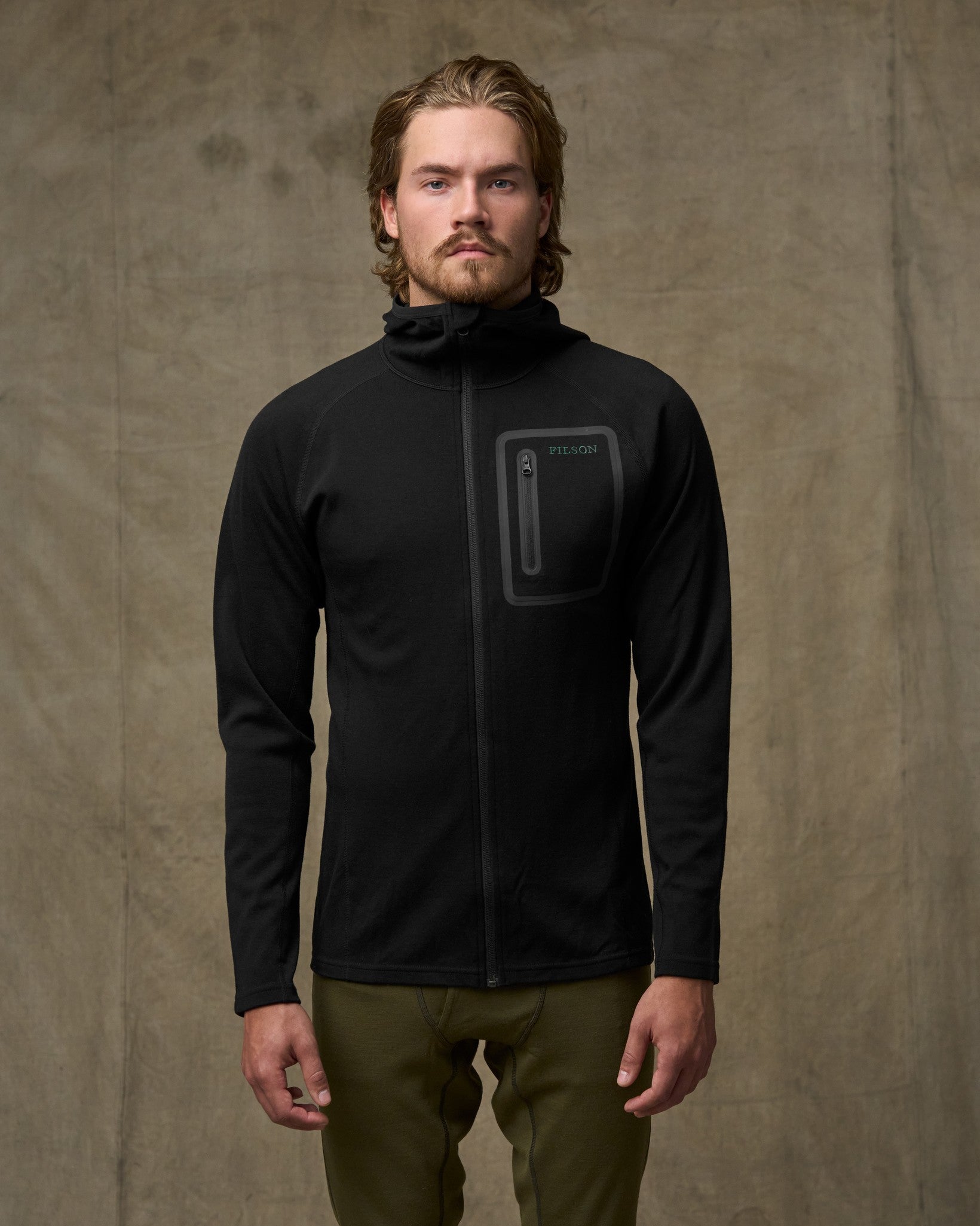 Soft. moisture wicking merino wool makes the heavyweight 400g Merino Hoodie an effective next-to-skin base layer in frigid conditions that can double as a light sweater. Constructed from ultrafine heavyweight 400-gram wool. it naturally wicks away sweat and resists odors effectively. Features full-length zipper. and zippered chest pocket.