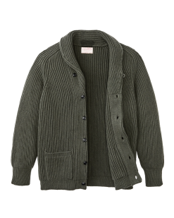 Our Bristol Cardigan Sweater is a dense and warm classic. crafted with thick 100% wool. With a distinctive vertical fisherman’s rib. this warm button-front sweater is a timeless design. The shawl-neck collar can be turned up for neck protection against cold wind. and the rib-knit cuffs and hem hold their structure for extended wear year after year. The front secures with 5 durable. chip-resistant buttons. with a spare included. Top-entry lower front pockets.