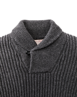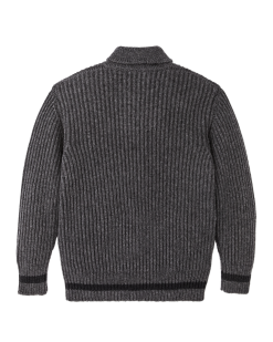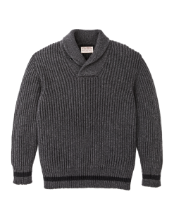 Bristol Shawl Neck Sweater – Gray Heather / Dark Charcoal Stripe