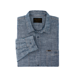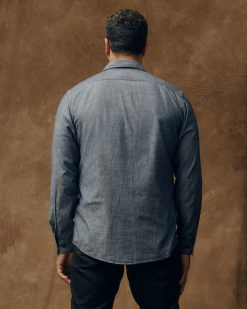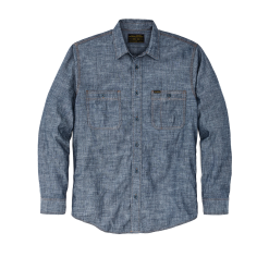 Our Chambray CPO Shirt is a lightweight cotton take on the heavy wool shirt worn by vintage U.S. Navy senior enlisted men. The tough chambray fabric stands up to abuse on the job in a weight that’s comfortable year-round. Garment-washed for shrinkage control and comfort from the first day. Button-secure chest pockets. with utility/tool slots in left pocket. Pleated shoulders for ease of motion. Chip-resistant melamine buttons.