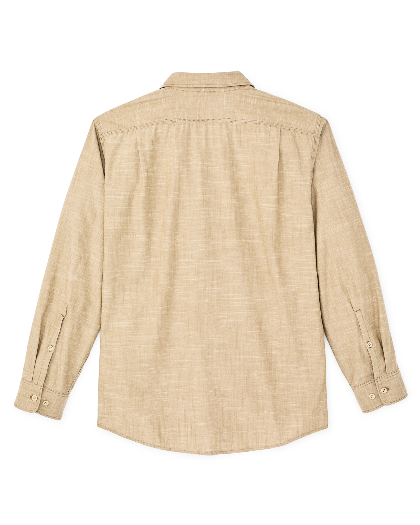 Our Chambray CPO Shirt is a lightweight cotton take on the heavy wool shirt worn by vintage U.S. Navy senior enlisted men. The tough chambray fabric stands up to abuse on the job in a weight that’s comfortable year-round. Garment-washed for shrinkage control and comfort from the first day. Button-secure chest pockets. with utility/tool slots in left pocket. Pleated shoulders for ease of motion. Chip-resistant melamine buttons.