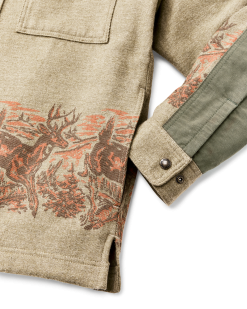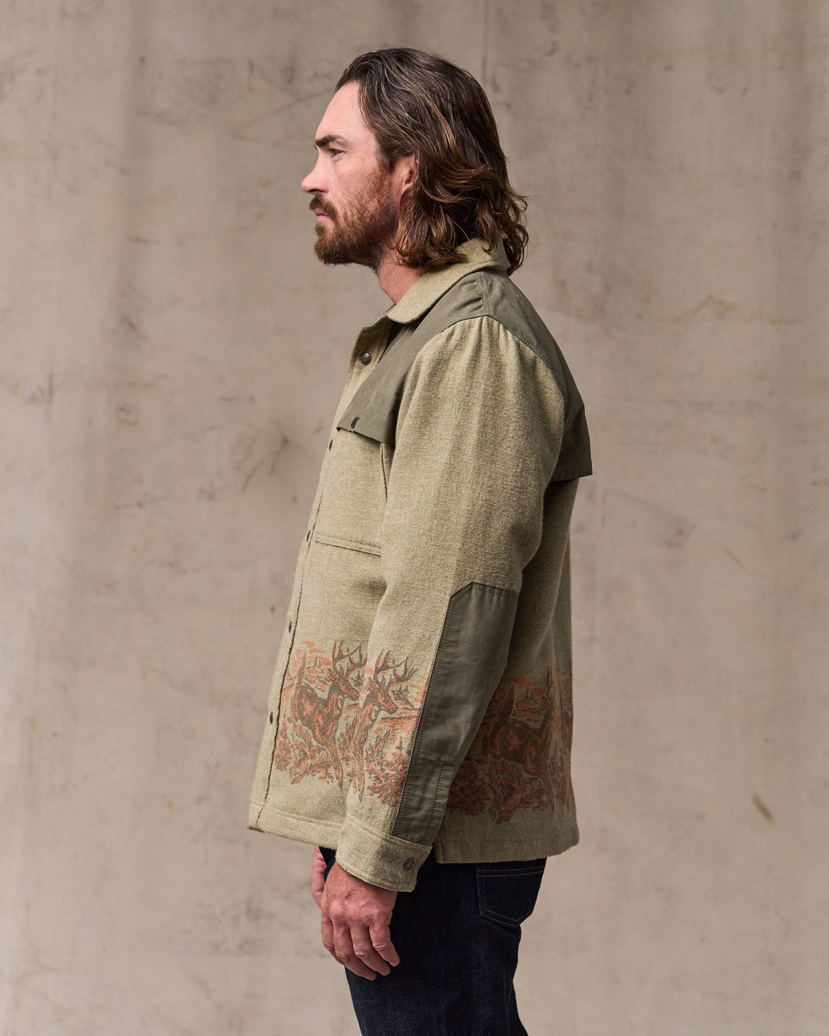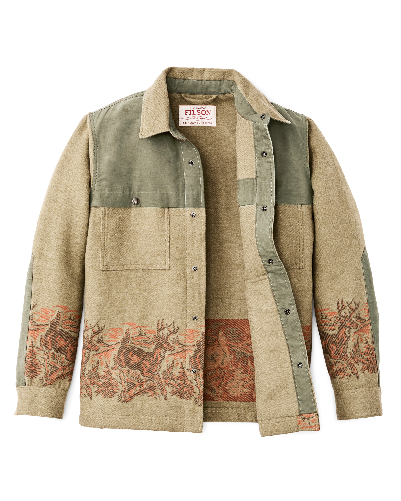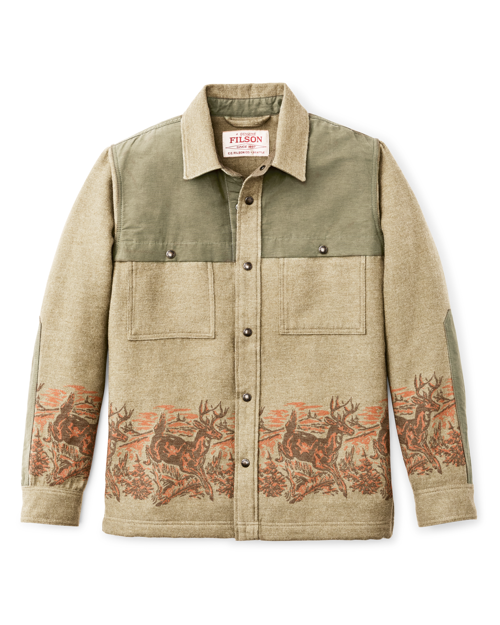 This variation of our classic functional Jac-shirt is made from midweight 9.3-oz. cotton double cloth. It performs like a light jacket with the cut of a shirt. The fabric is brushed on both sides like vintage camp blankets for comfort. in a weight that’s ideal for milder temperatures. Reinforcements over the shoulders and forearms add durability and weather resistance. Snap-close front. chest pockets. and adjustable cuffs. Side-seam hand pockets.