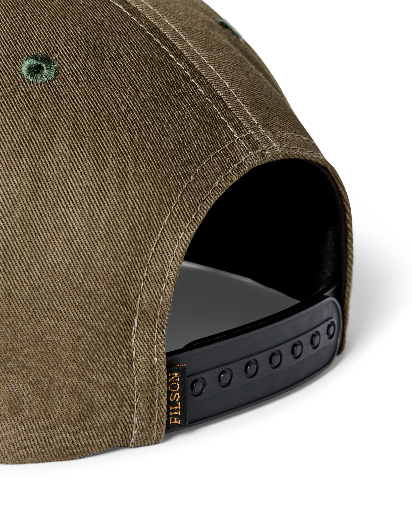 Like the trucker hats of the 1970s. this 5-panel cap has a pinched front crown and a flat brim. Made from strong 9-oz. cotton twill. it’s built for lasting all-season comfort. Adjustable plastic-snap back strap for a custom fit. Embroidered logo on front.