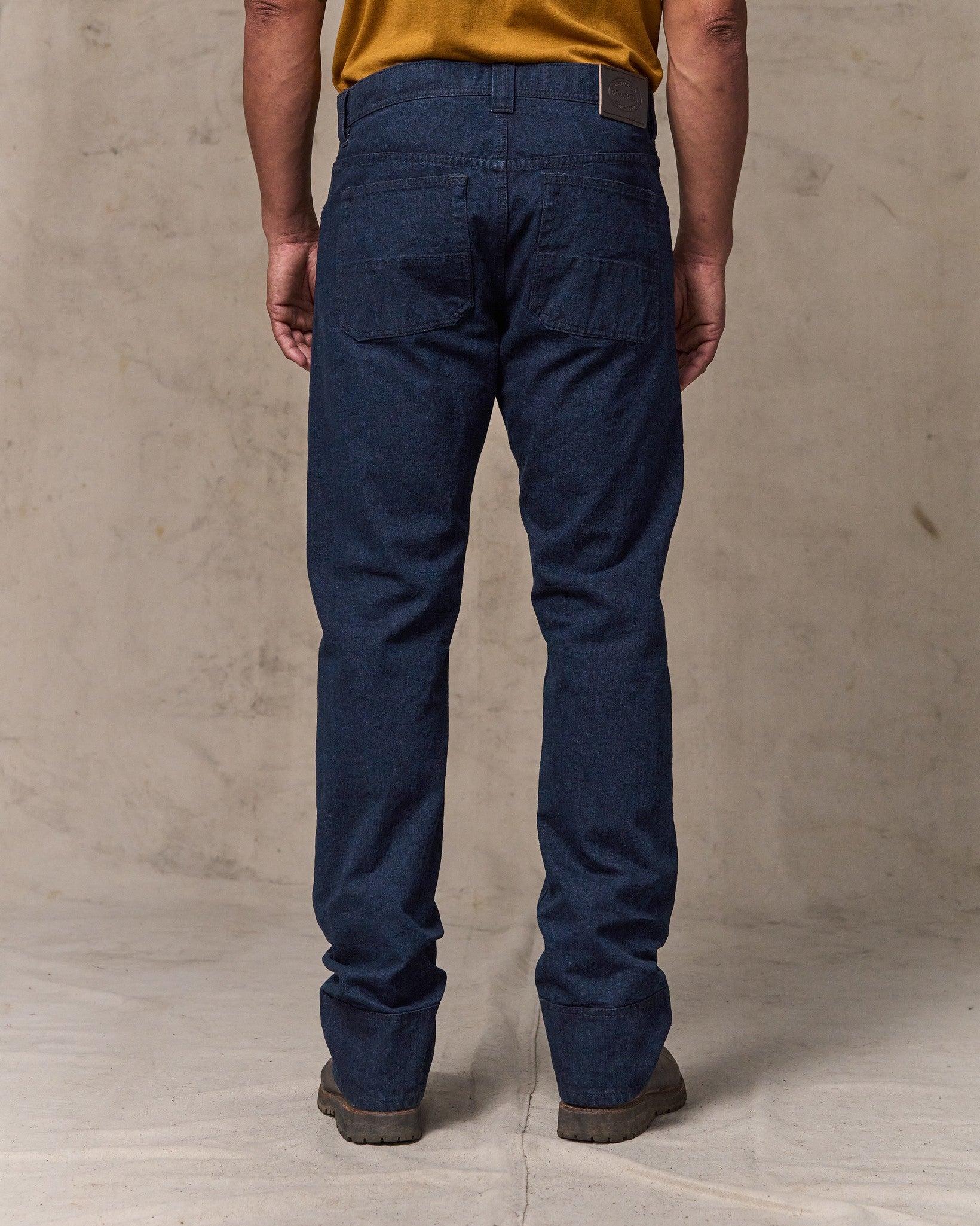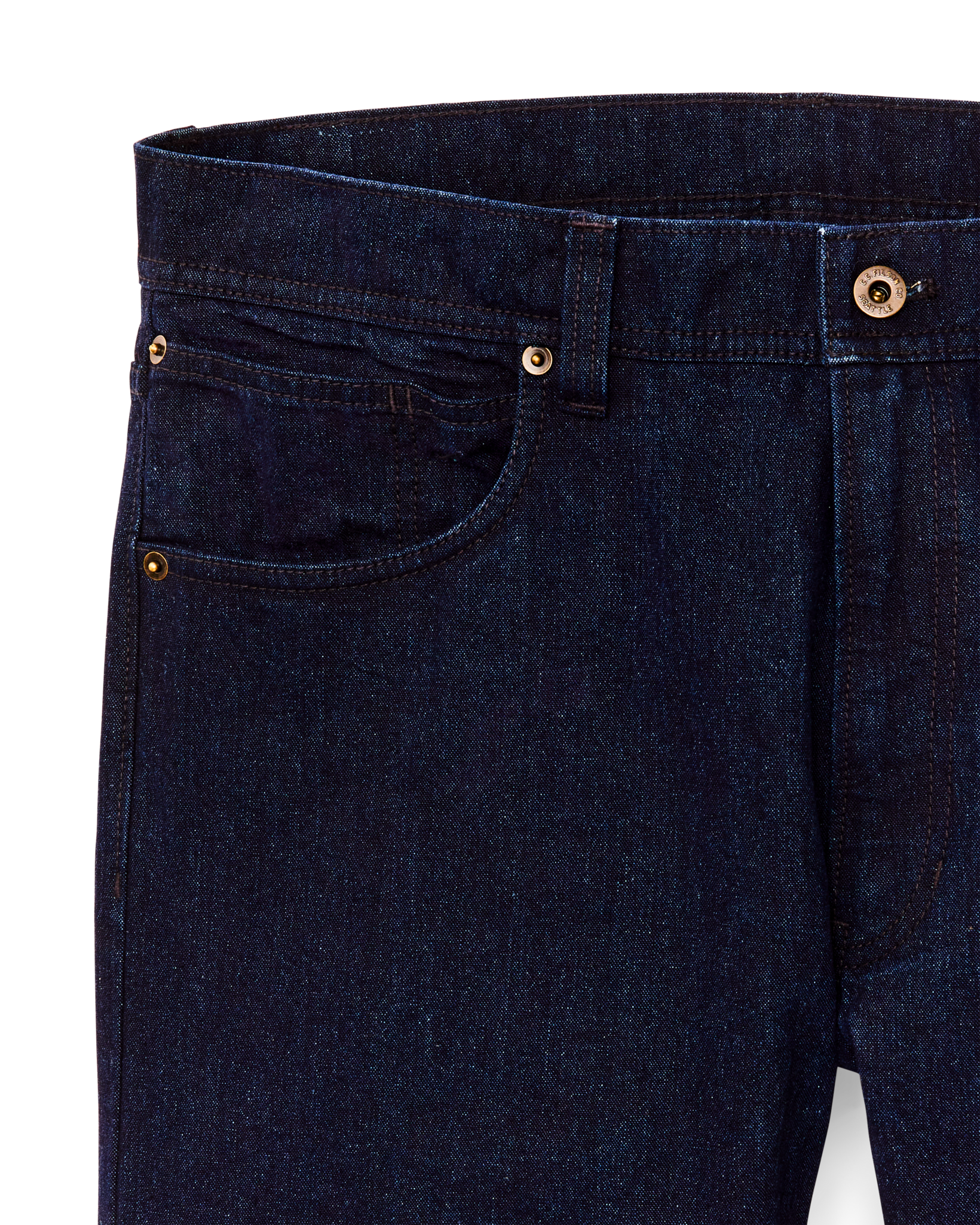 Our Dry Tin Cloth 5-Pocket Pants are made with the unwaxed version of our iconic canvas that’s provided protection from brush. abrasion. and hard use for decades. They’re lighter than many jeans. with durability that is unrivaled. Like a good pair of boots. they break in and soften with wear. The leg cut is straight. with room in the thighs for easy movement. A double-layer heel guard adds structure and durability. Zippered fly and snapped waistband. Reinforced pockets.