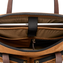 The versatile Dryden Briefcase is made of abrasion-resistant 1000D nylon that shrugs off the abuse of daily carry. This fabric is legendary for its ability to withstand abrasion and. sharing the same weave as ballistic nylon. its resistance to punctures and tears is exceptional. A padded sleeve fits laptops up to 16. The trolley strap on the back enables securing the bag over luggage handles. Features large exterior pockets for organizing quick-access essentials. Removable. adjustable shoulder strap.