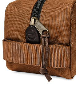 Our Dryden Dopp Kit carries shaving needs. a toothbrush. and other travel essentials without weighing you down. It’s made from 1000-denier nylon. a lightweight. durable material that shares the same weave with heavier ballistic nylons. The 2×2 basketweave construction delivers excellent resistance to abrasion and tearing. The interior is lined with lightweight nylon for added protection in case of leaking contents. Exterior stow pocket on one side.