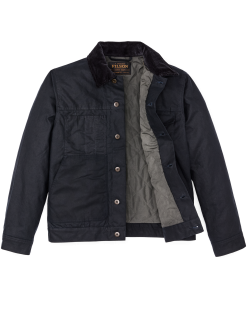The Insulated Short Cruiser is made with our signature Shelter Cloth waxed cotton. At 11-oz. per square yard. this fabric is midweight for Filson. yet still heavier-duty than its imitators. Strong and flexible. Shelter Cloth comes from England’s famed British Millerain. waxed-cotton pioneers since 1880. The PrimaLoft insulation is lightweight and will continue to trap heat even if it gets wet. The collar and cuffs are lined with 100% cotton corduroy for comfort against the skin. Virtually unbreakable metal-shank buttons secure the front closure and waist-adjustment tabs. Large hand pockets plus flapped and slotted chest pockets.