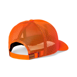 Our classic 6-panel cap hugs your head comfortably. with an adjustable strap and metal buckle on the back. It features a 3 precurved bill for sun protection and an embroidered logo patch on the front. Made of high-visibility Blaze Orange fabric on the front with a mesh back for breathability. safety. and comfort in the field.
