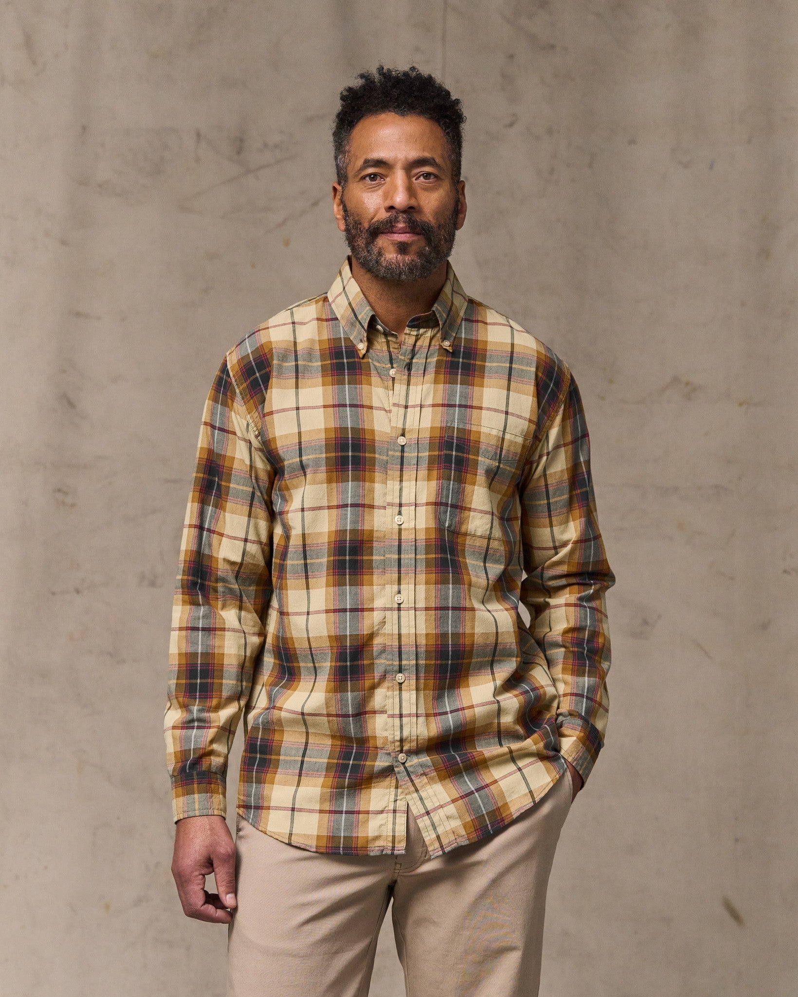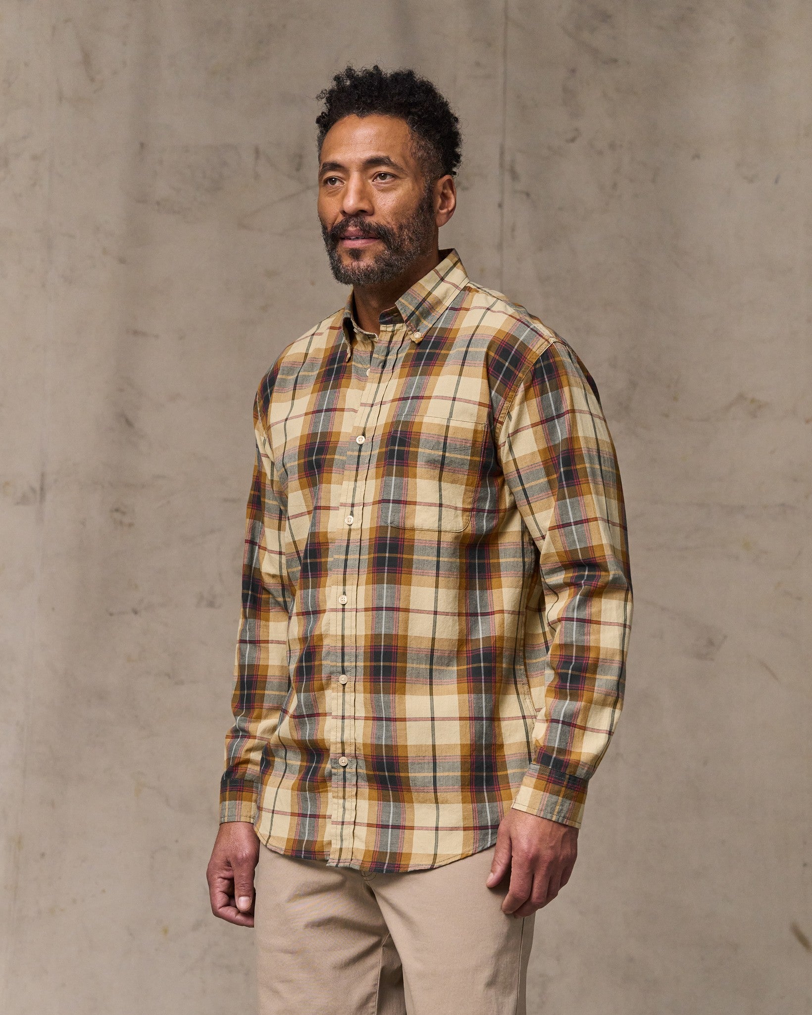 Madras Button-Down Shirt – Tan / Spruce Multicolor