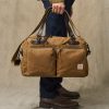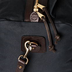 Our Rugged Twill Duffle Bags embody the philosophy that’s guided Filson since 1897. making products that are handed down rather than tossed out. Made with our signature Rugged Twill and Bridle Leather. our Medium Duffle Bag is built tough enough for the most extreme excursions and sized for long weekends and multi-day trips. The lightly waxed fabric keeps gear dry and closes with a solid brass YKK® zipper that’s protected by a snap-secured storm flap. We use saddle-grade Bridle Leather for the removable shoulder strap and for the handles that wrap around the bag to securely cradle heavy loads. Interior end-cap pockets for organization.