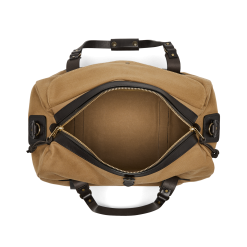 Our Rugged Twill Duffle Bags embody the philosophy that’s guided Filson since 1897. making products that are handed down rather than tossed out. Made with our signature Rugged Twill and Bridle Leather. our Medium Duffle Bag is built tough enough for the most extreme excursions and sized for long weekends and multi-day trips. The lightly waxed fabric keeps gear dry and closes with a solid brass YKK® zipper that’s protected by a snap-secured storm flap. We use saddle-grade Bridle Leather for the removable shoulder strap and for the handles that wrap around the bag to securely cradle heavy loads. Interior end-cap pockets for organization.