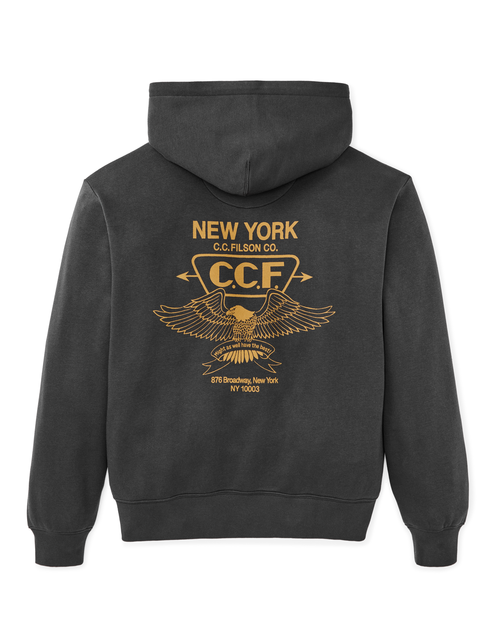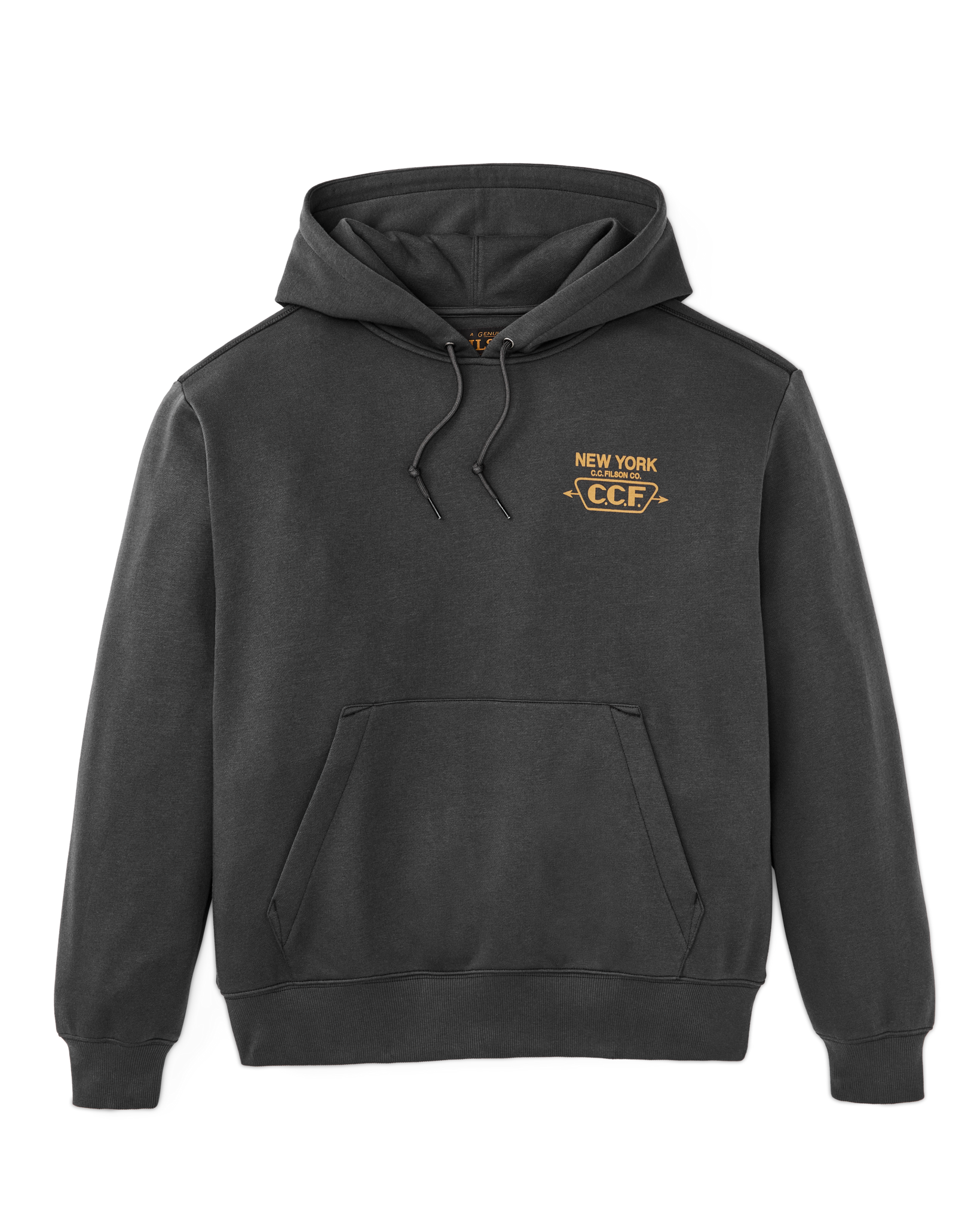 Our NYC Graphic Hoodie is an ideal midweight layer for a cool morning run. around a campfire. or under a vest on the jobsite. Made with cotton fleece blended with polyester for strength and shrinkage control. Ribbed hem and cuffs are knitted with cotton and elastane for lasting stretch and recovery. The drawcord-adjustable hood is double-layer for added warmth and structure. Kangaroo front pocket. Finished with custom NYC flagship store graphics.