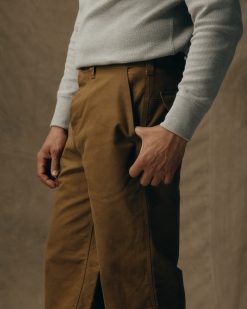 In service for over 75 years. our Double Tin Cloth Pants are a virtually impenetrable barrier to briars. foul weather. and wet brush. With a double layer of our proprietary. tightly woven waxed Tin Cloth from waist to knee. they provide armor-like protection from abrasion and punctures. They’re constructed with double-needle stitching and reinforced with bar-tacking for added strength and durability. Metal-shank button fly and suspender buttons. Roomy fit through seat and thighs for ease of motion with non-binding comfort.