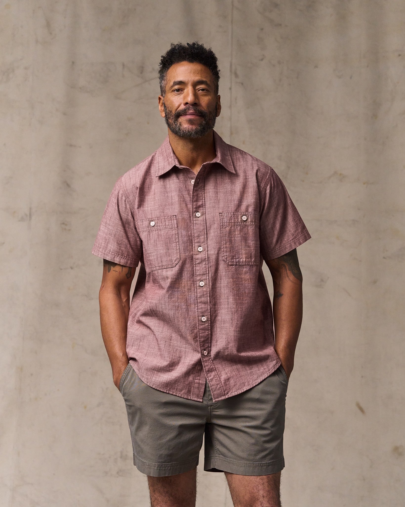 Deceptively rugged and light enough for warm weather. our Short Sleeve Chambray Shirt will be a go-to favorite. It’s made with midweight chambray cotton. a fabric renowned for its durability in work shirts. This warp-faced fabric is related to denim. in that different-colored warp and weft yarns are used in weaving. Chambray differs from denim in that it is a symmetrical plainweave. versus denim’s twill weave. The back shoulders feature dual knife pleats for ease of motion. Button-secure chest pockets. with a pencil slot sewn into the left pocket.