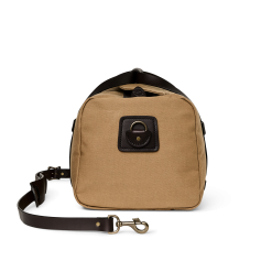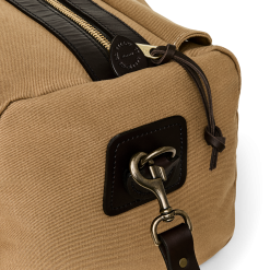 Our Rugged Twill Duffle Bags embody the philosophy that’s guided Filson since 1897. making products that are handed down rather than tossed out. The bag is made from Rugged Twill. an industrial-strength canvas from Britain’s most storied mills that is lightly waxed for water resistance. The durable Bridle Leather for the handles is strong enough for horse tack and wraps completely under the bag to cradle the heaviest loads. The solid brass zipper from YKK® is rustproof for a lifetime of dependable service. Tin Cloth canvas binding on interior seams prevents fraying and wear. Each interior endcap features a stow pocket for organizing smaller essentials and the Bridle Leather shoulder strap is detachable for hand carry. Custom sand-cast brass hardware.