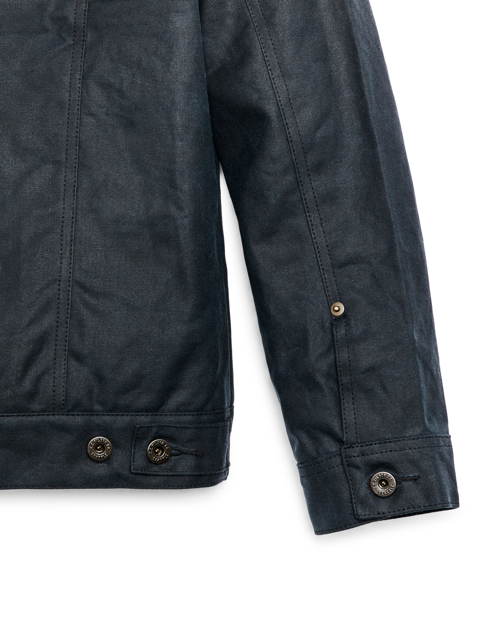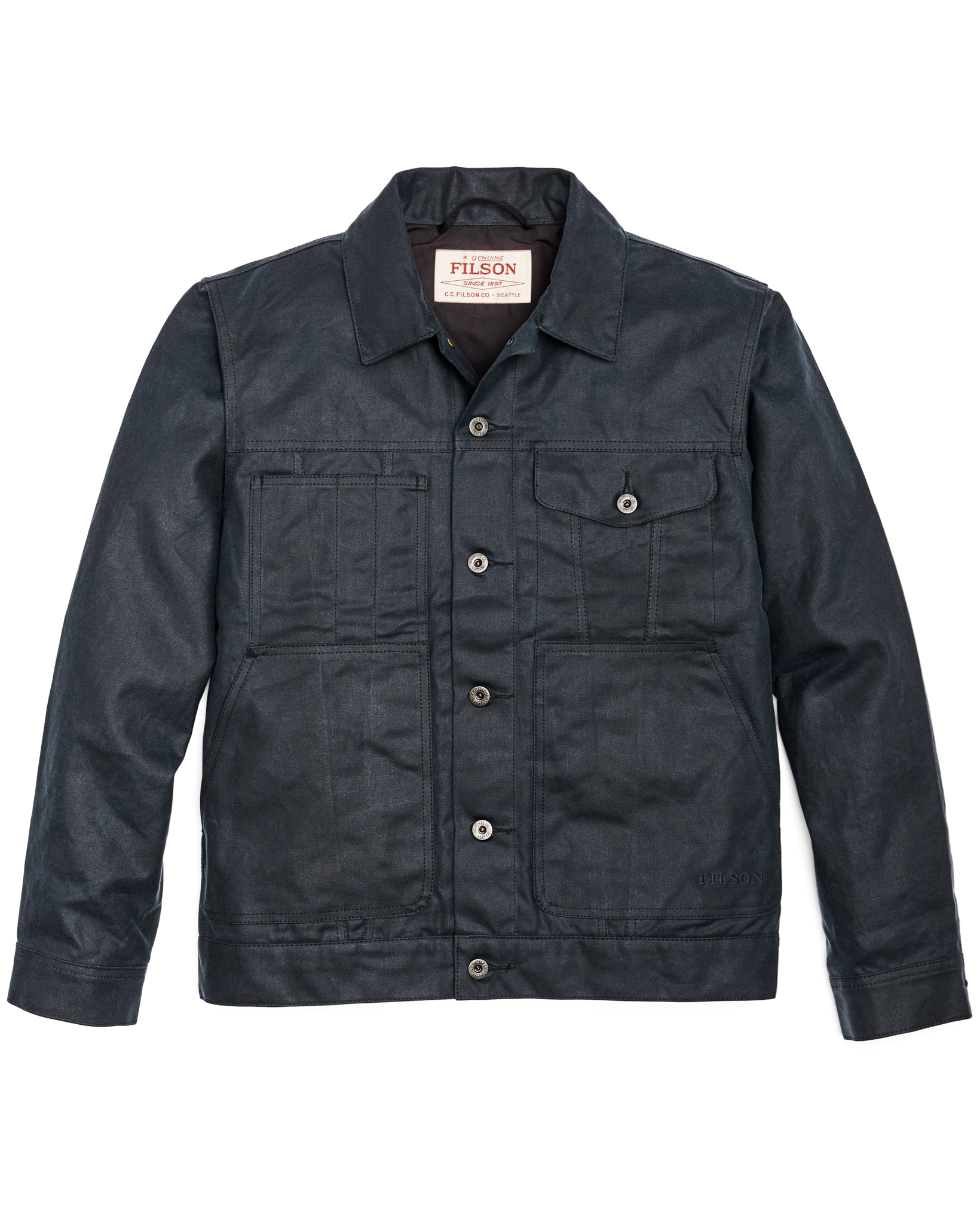 The Short Lined Cruiser is built with Tin Cloth. Filson’s signature waxed cotton that has delivered protection from weather. brambles. and abrasion for a century. This 14-oz. canvas duck’s weave is uncommonly tight with outstanding tear strength. Treated with our oil-finish wax that keeps you dry in foul weather. its durability and weather resistance is unmatched. Tin Cloth is built to break in rather than wear out.