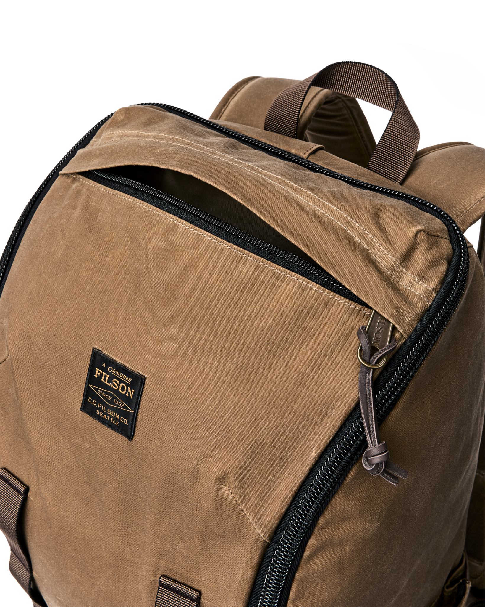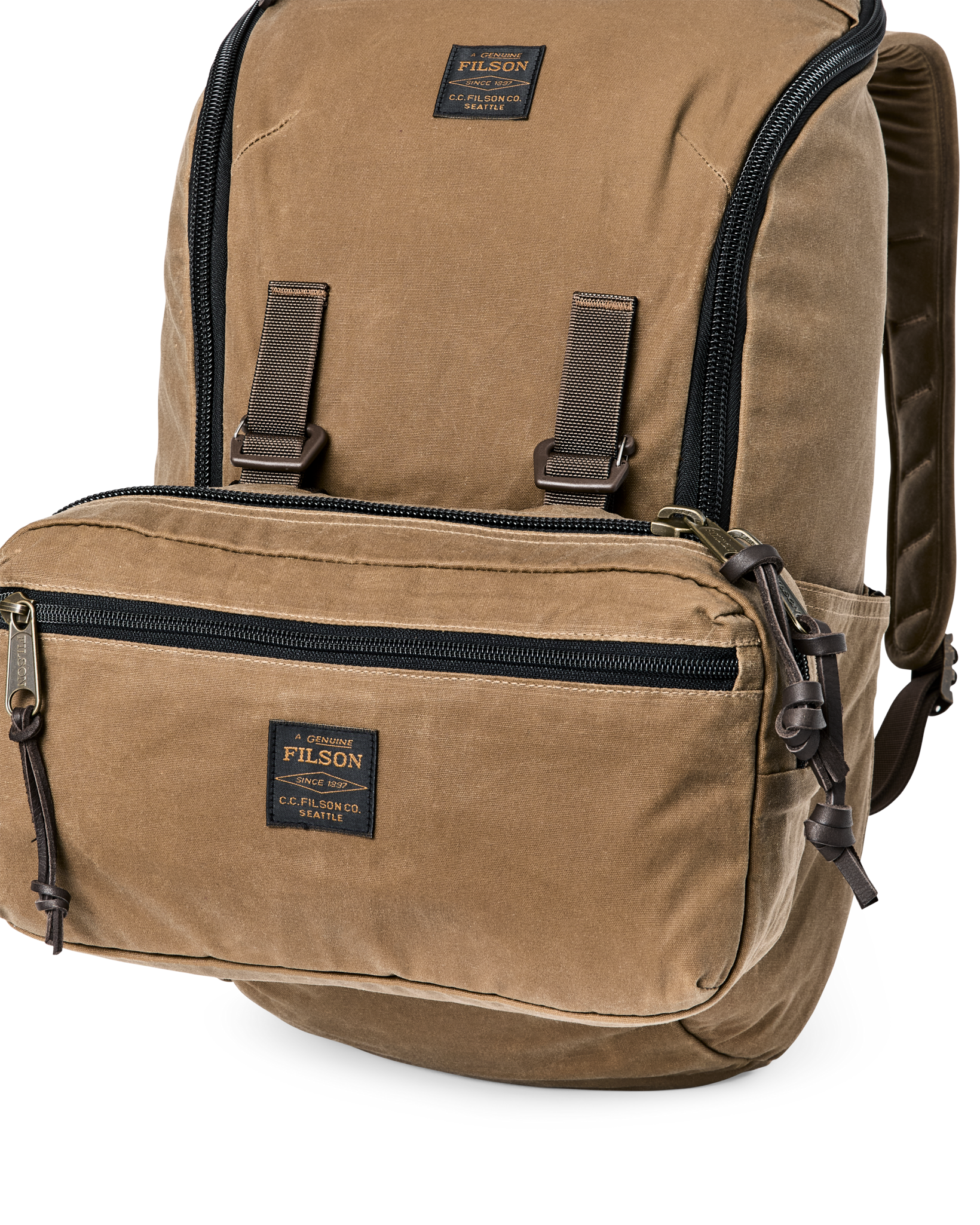 The Trapper Creek 28L Backpack blends heritage materials with streamlined. efficient design. The midweight 10.5-oz. waxed cotton shrugs off foul weather to keep your gear dry. The main zipper extends down both sides on the front. for excellent visibility and easy access to gear.