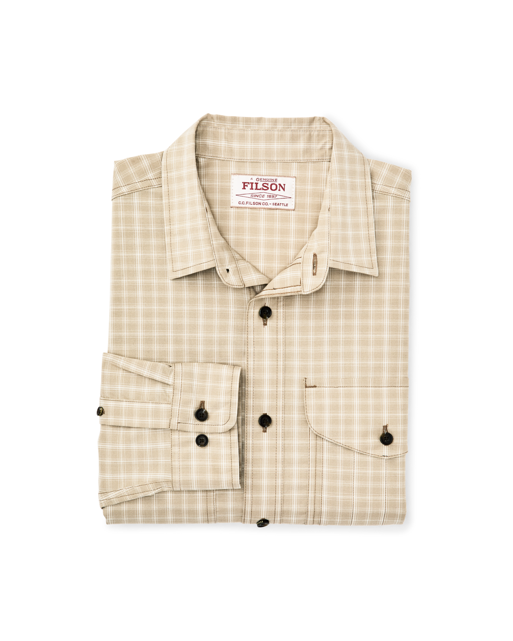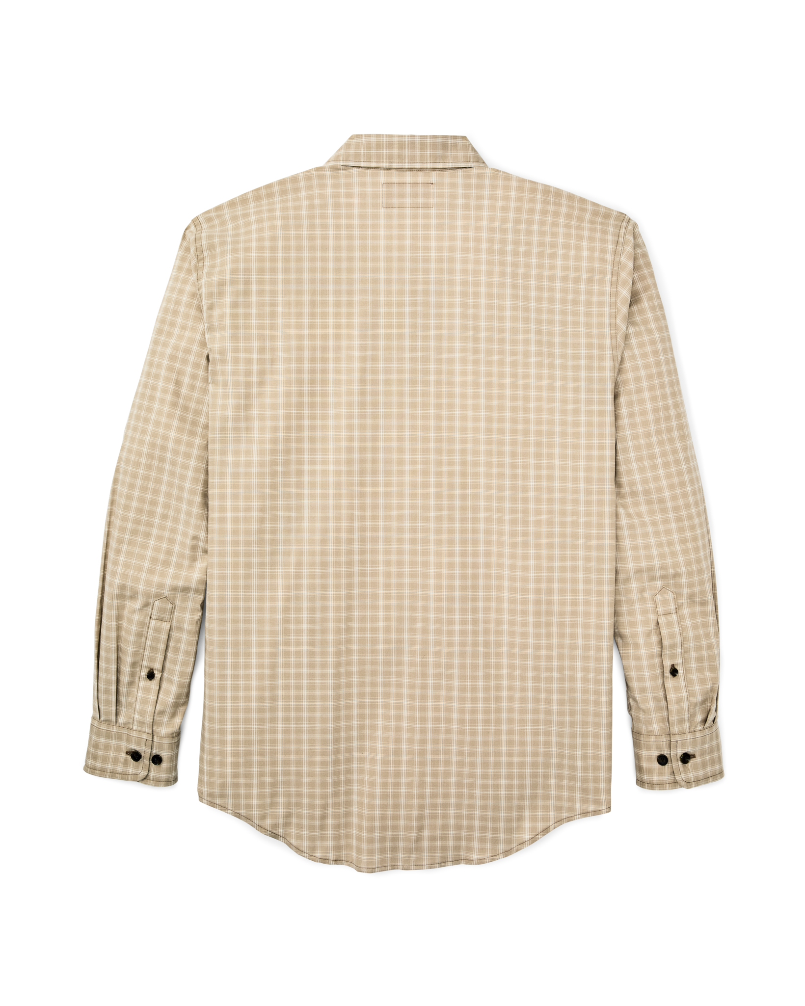 A favorite for warm-weather action. whether casting in high-desert streams. hiking into alpine lakes. or poling a skiff across the tide flats. The Twin Lakes material is woven with a bit of built-in stretch for complete freedom of motion. COOLMAX in the cotton blend wicks moisture away from the body. dries quickly. and blocks harmful UV rays. Chest pockets are covered with buttoning flaps for security. and the left side features a slotted tool patch to keep accessories handy. Embroidered eyelets under the arms aid ventilation and in the pocket bottoms aid drainage. Button-front closure and spread collar. Button-adjustable cuffs.